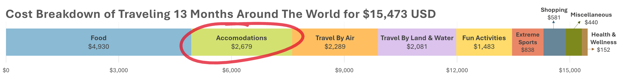 Perhaps the most shocking number from traveling 13 months around the world for less than $15,500 is how much I paid for accommodations.
