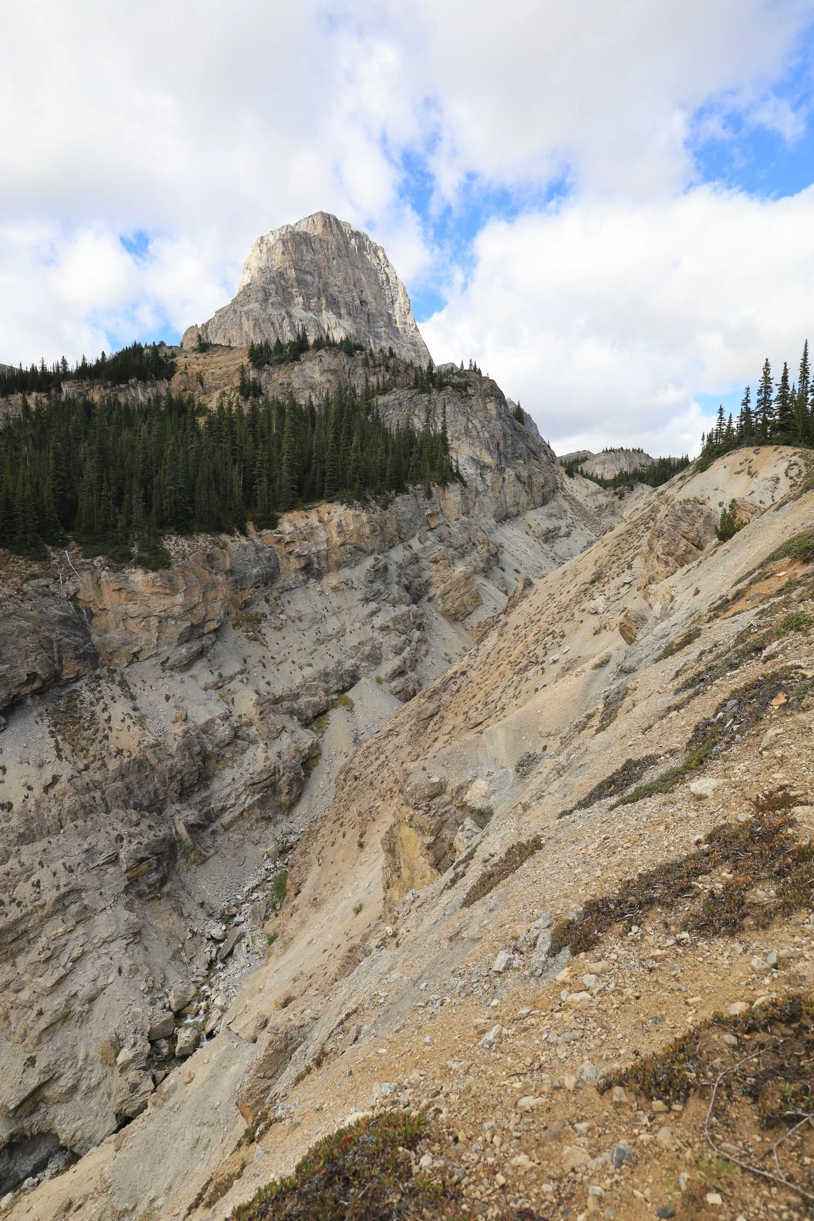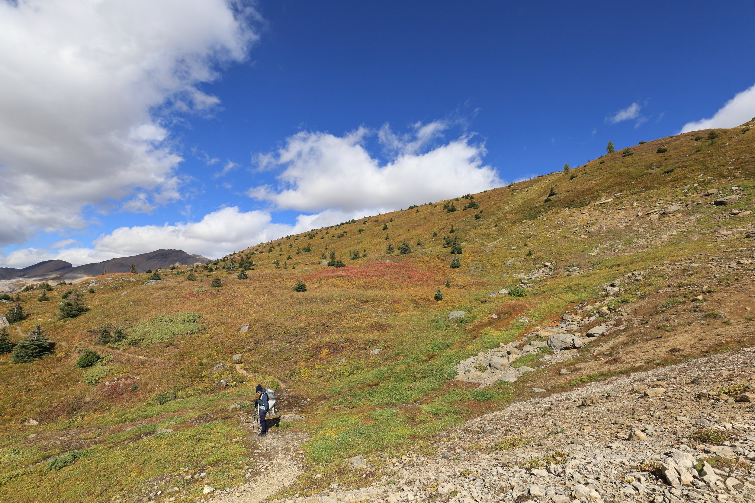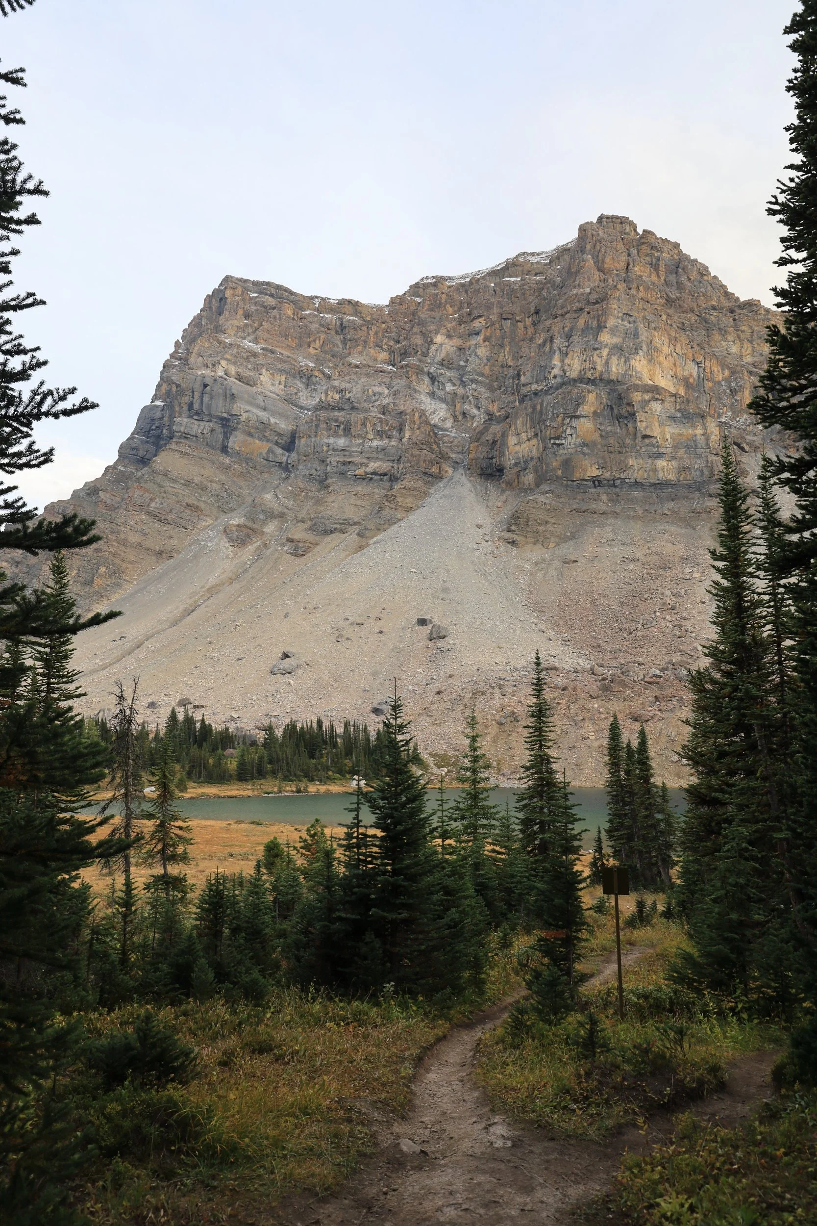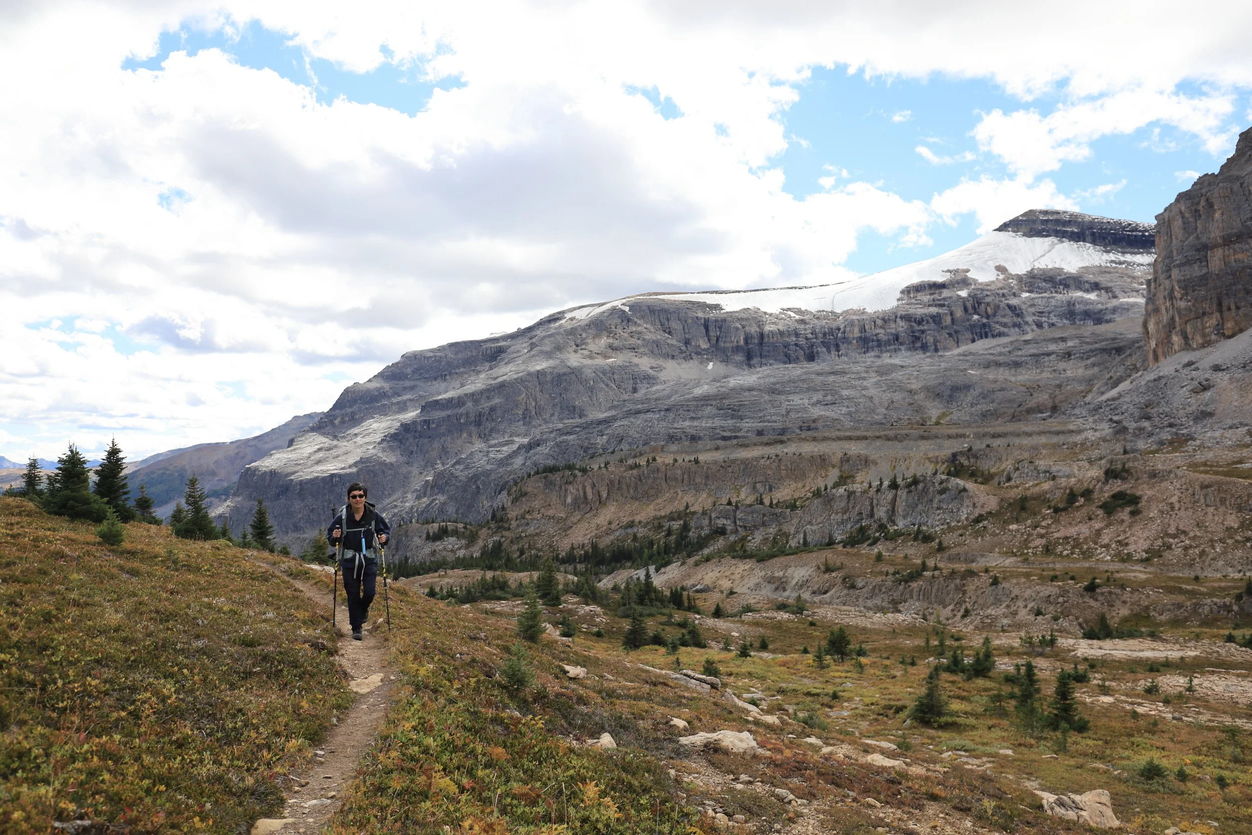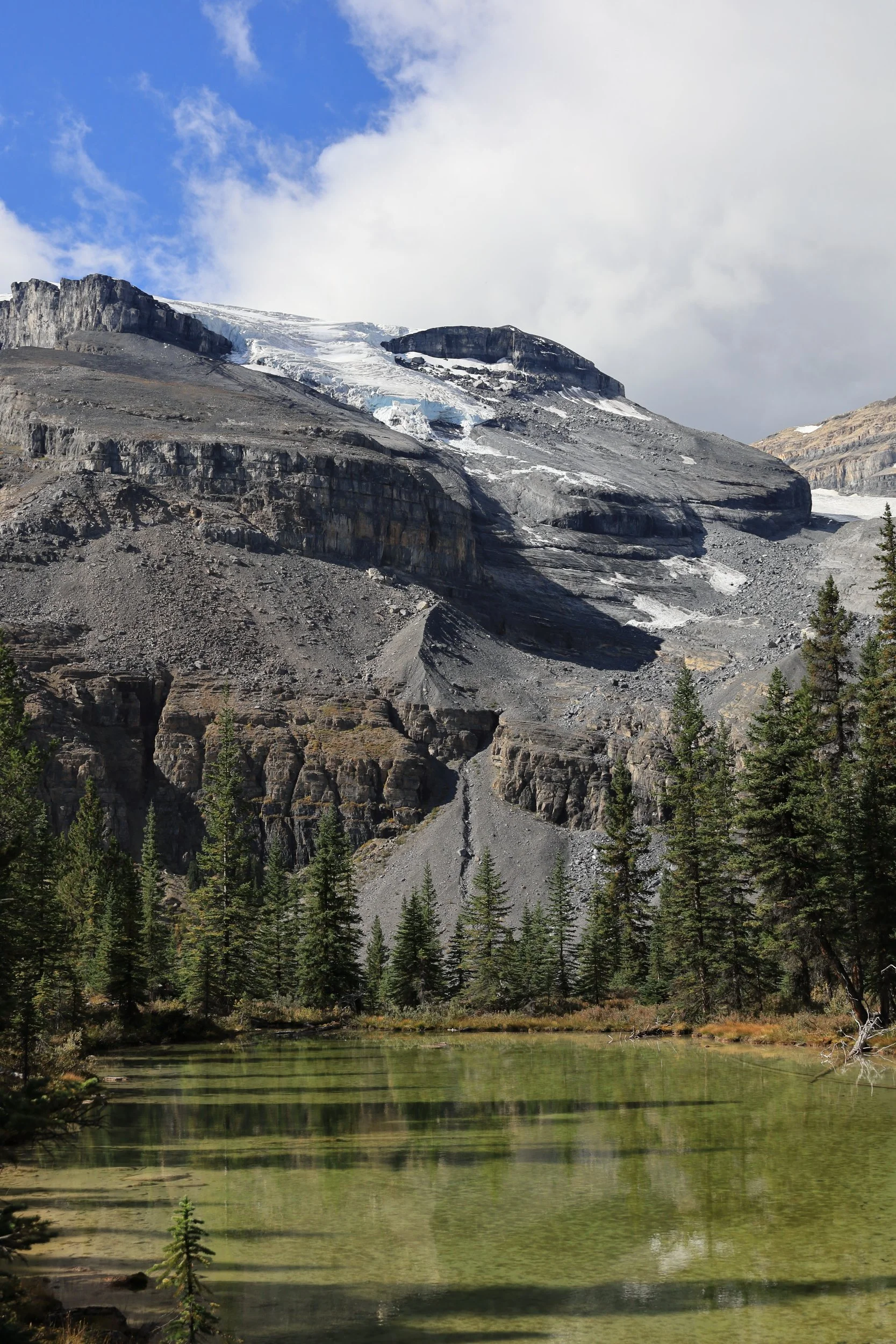 Back on the trail we could see Mount Hector and get a closer view of the Hector Glacier. That didn’t seem right at first so I even verified the names because Hector Lake is on the opposite side of the Icefields Parkway.