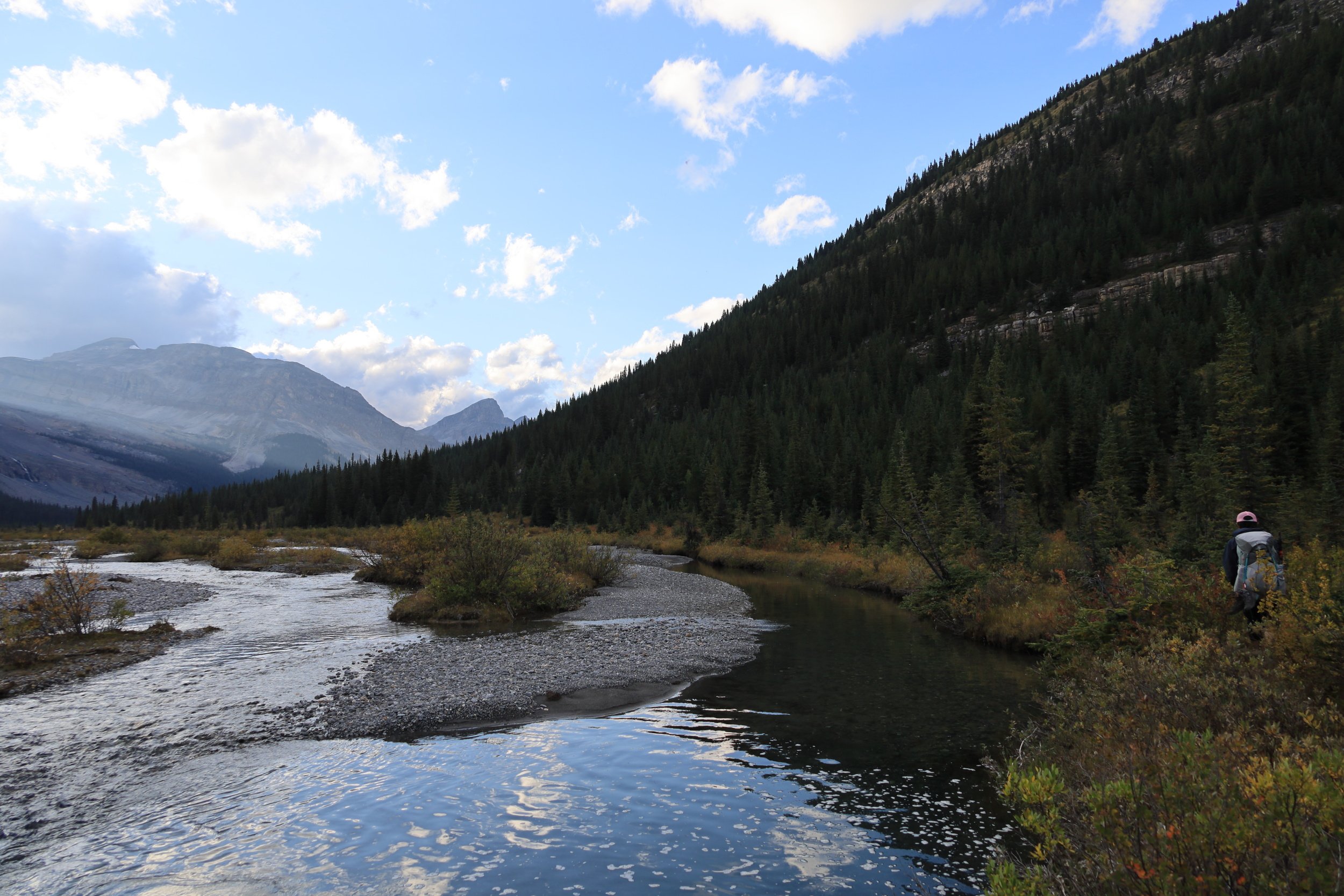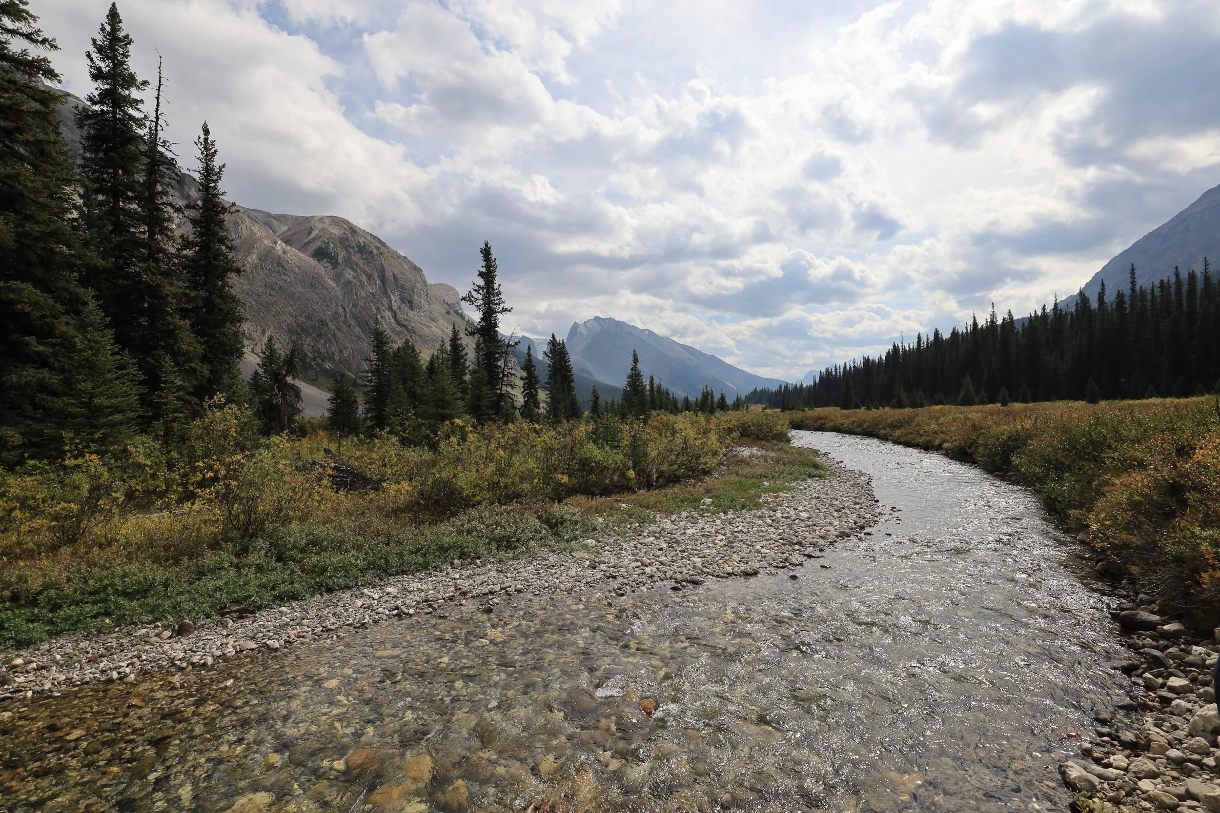 From the photos it looks quite beautiful, an open field with a clear line of sight down the entire valley. What can be so confusing? As long as you keep the Pipestone River on your left and don’t start climbing up the mountain on your right, you can’t really get lost.