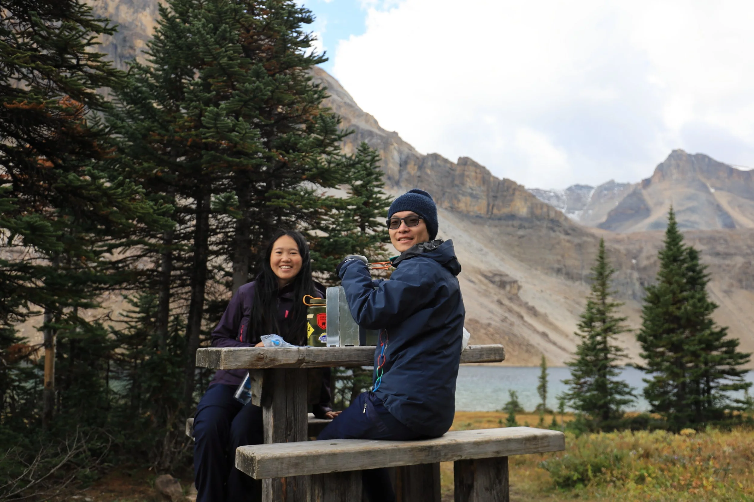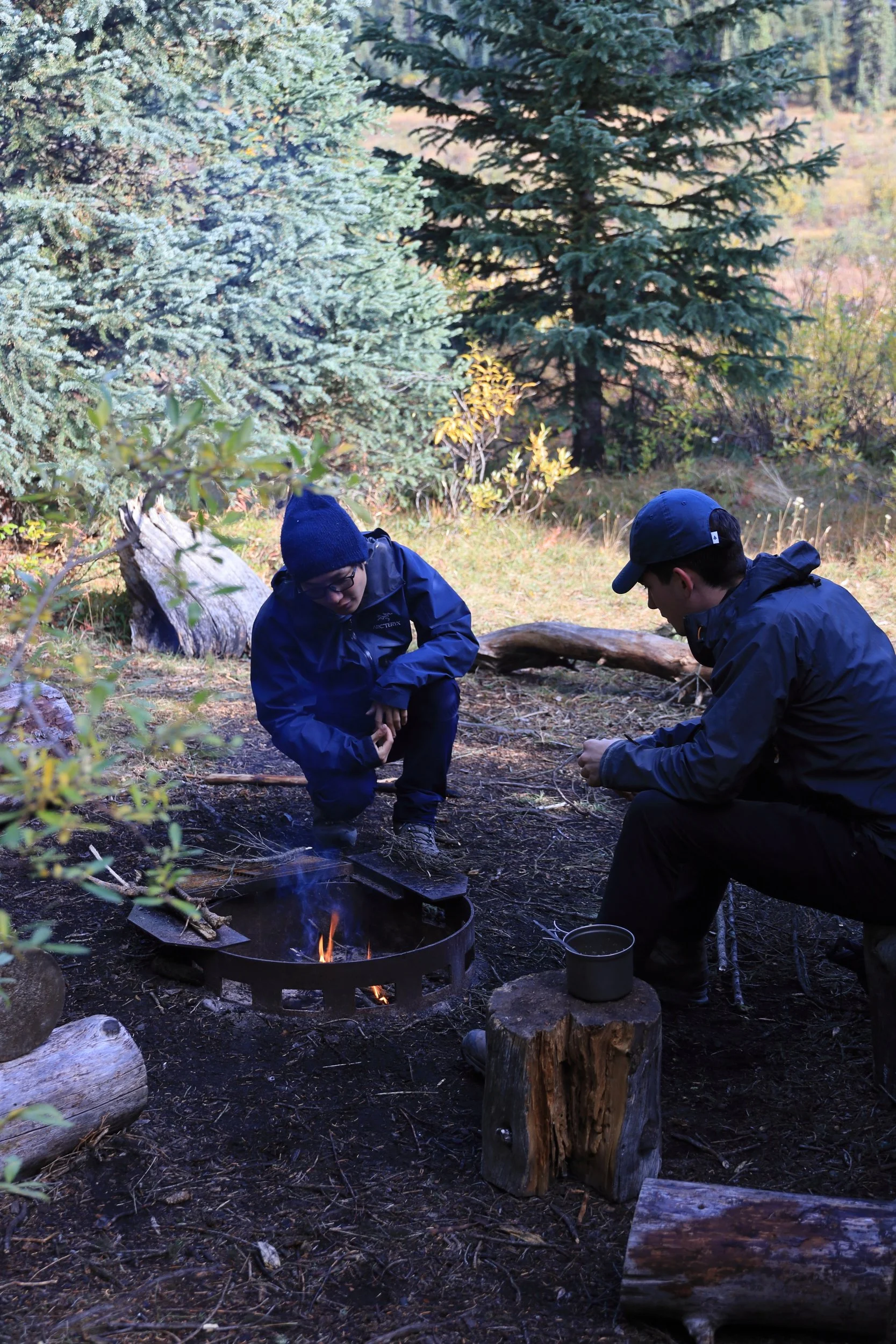 Luckily there was one other person at this campground, and he was really determined to make this campfire work. He was an international student who had landed in Canada a few days ago to study at the University of Calgary (class starts tomorrow!). We were absolutely mind blown that he found his way to this random, remote backcountry campsite by himself in a new country on his second day.