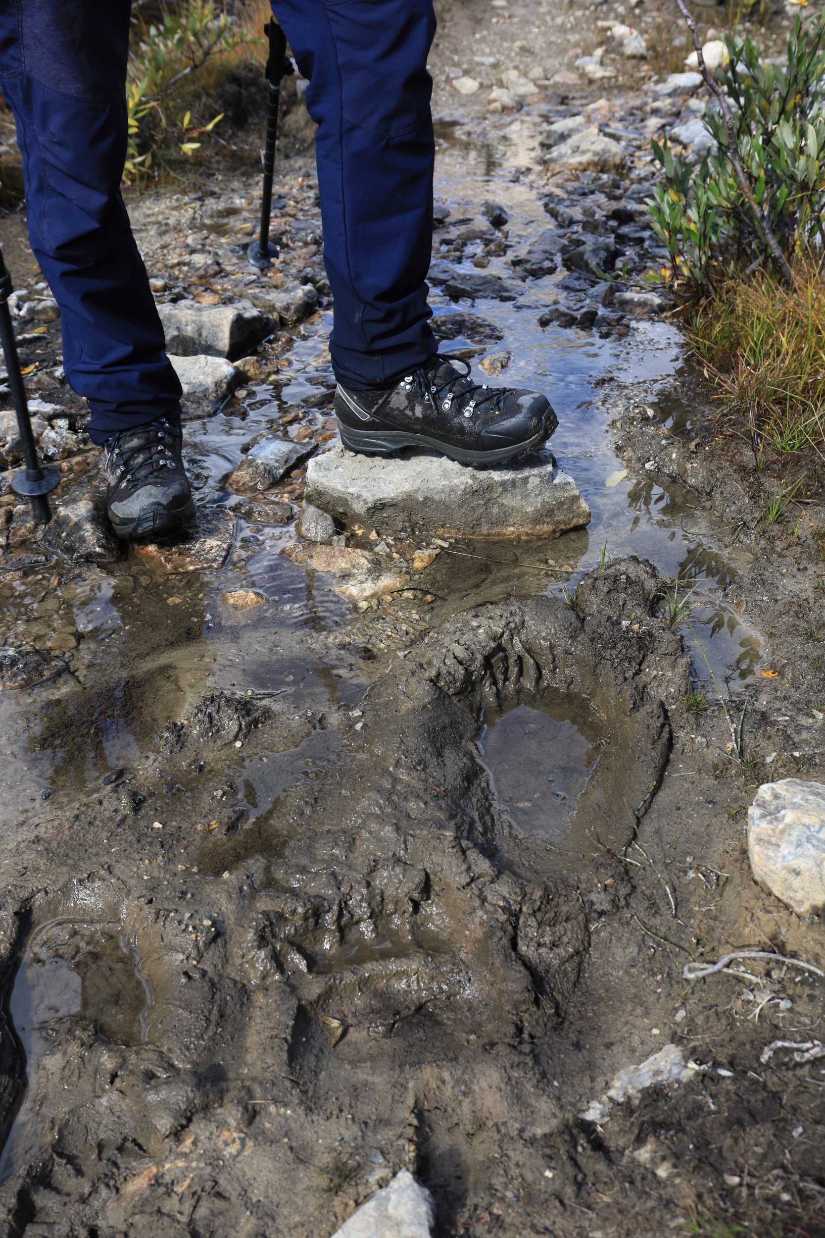 Armed with experience from yesterday’s 20 creek crossings (I think we did less, so maybe we took a more efficient route than the AllTrails reviewer), I didn’t bother switching shoes anymore until we finished the creek section. I couldn’t just go with my pant legs removed due to all the scratchy bushes to be crushed, hence the one leg exposed fashion statement.