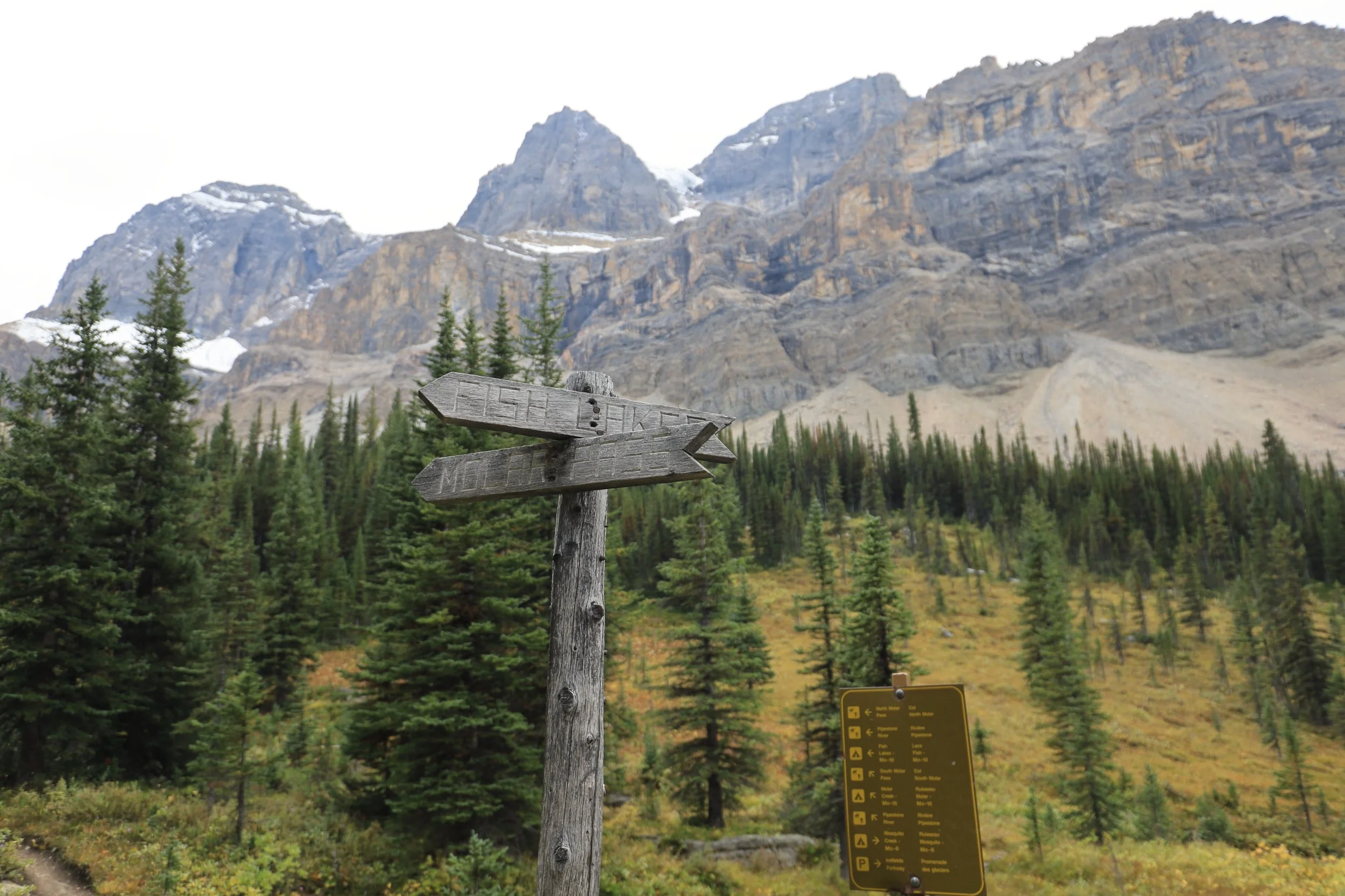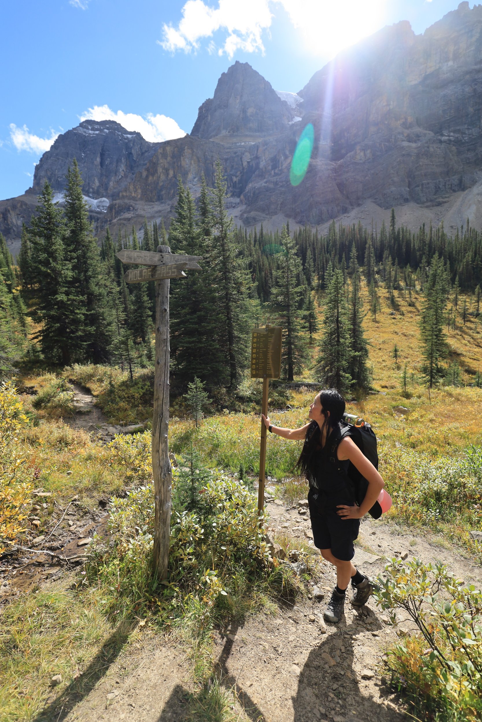 Very few hikers have attempted the Molar Pass Loop compared to its popular neighbor Skoki Loop to the south. Due to the numerous river crossings, bushwhacking, a grueling 51.5km length and elevation change over the North Molar Pass (750m gain) and South Molar Pass (550m gain) over 3 days and 2 nights, we didn’t feel comfortable bringing any friends this time. Topping it off by starting at Mosquito Creek which circles around Noseeum Mountain… yeah it’s a pretty hard sell.