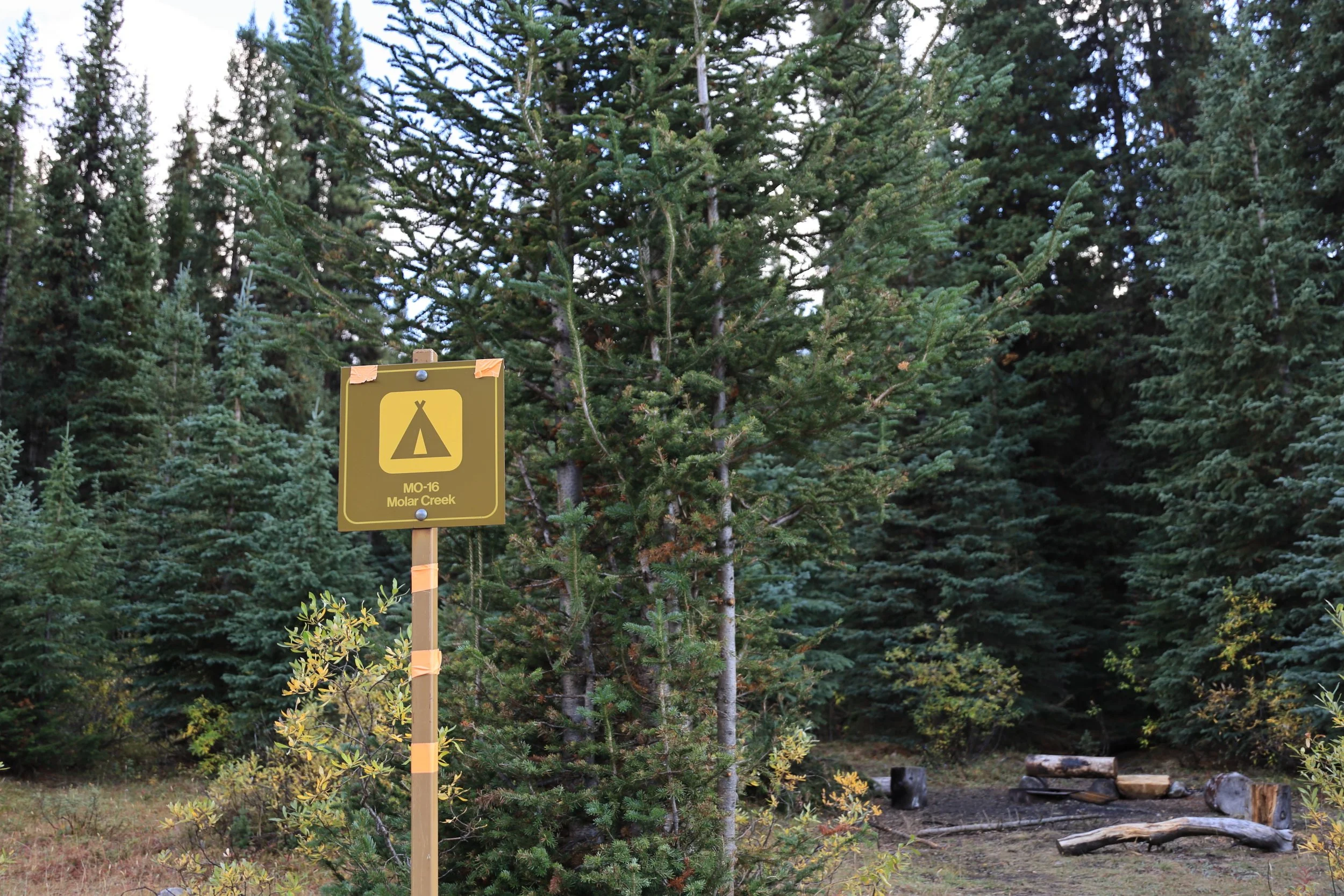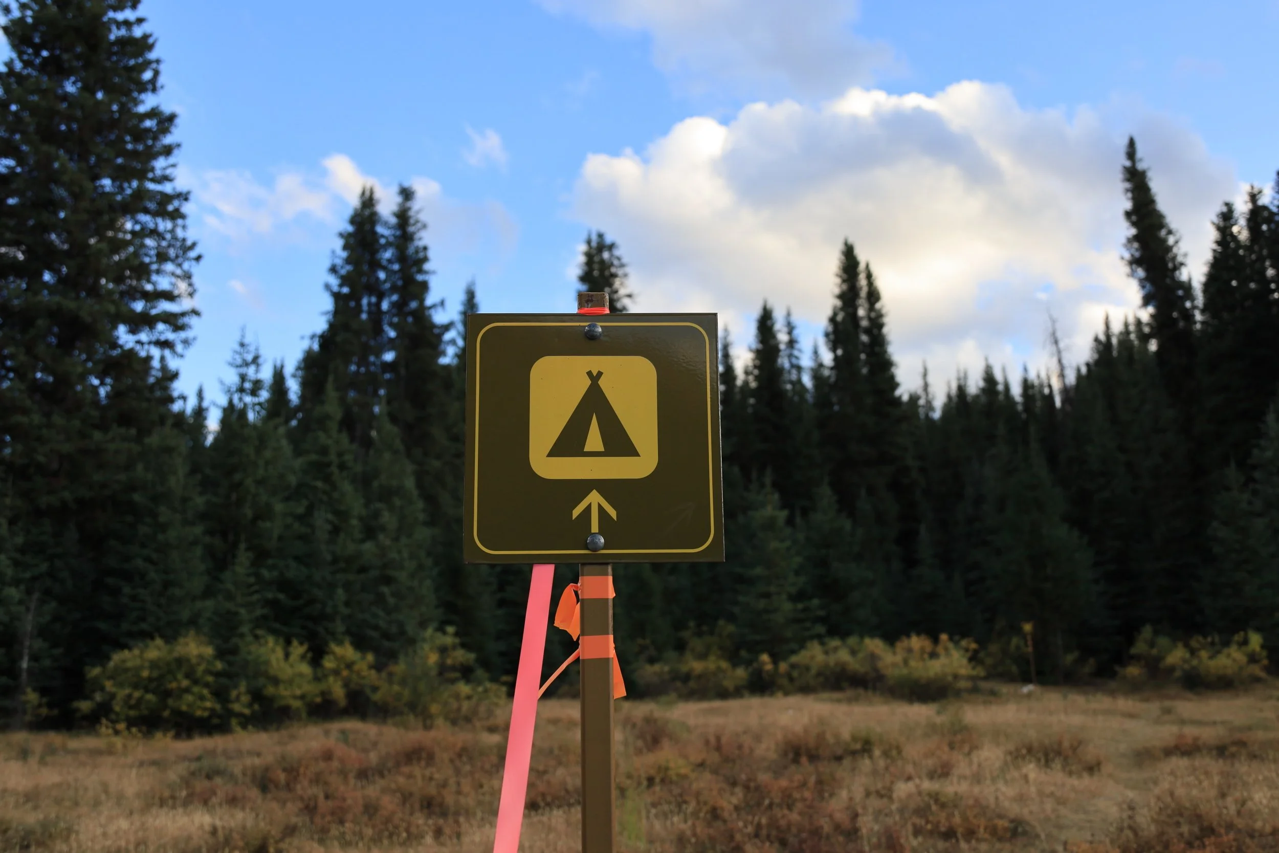 The campground was really well tucked away in the trees off the trail. We probably would have missed it too if the signs weren’t wrapped with reflective orange and pink flagging tape, and I didn’t specifically know to look for that.