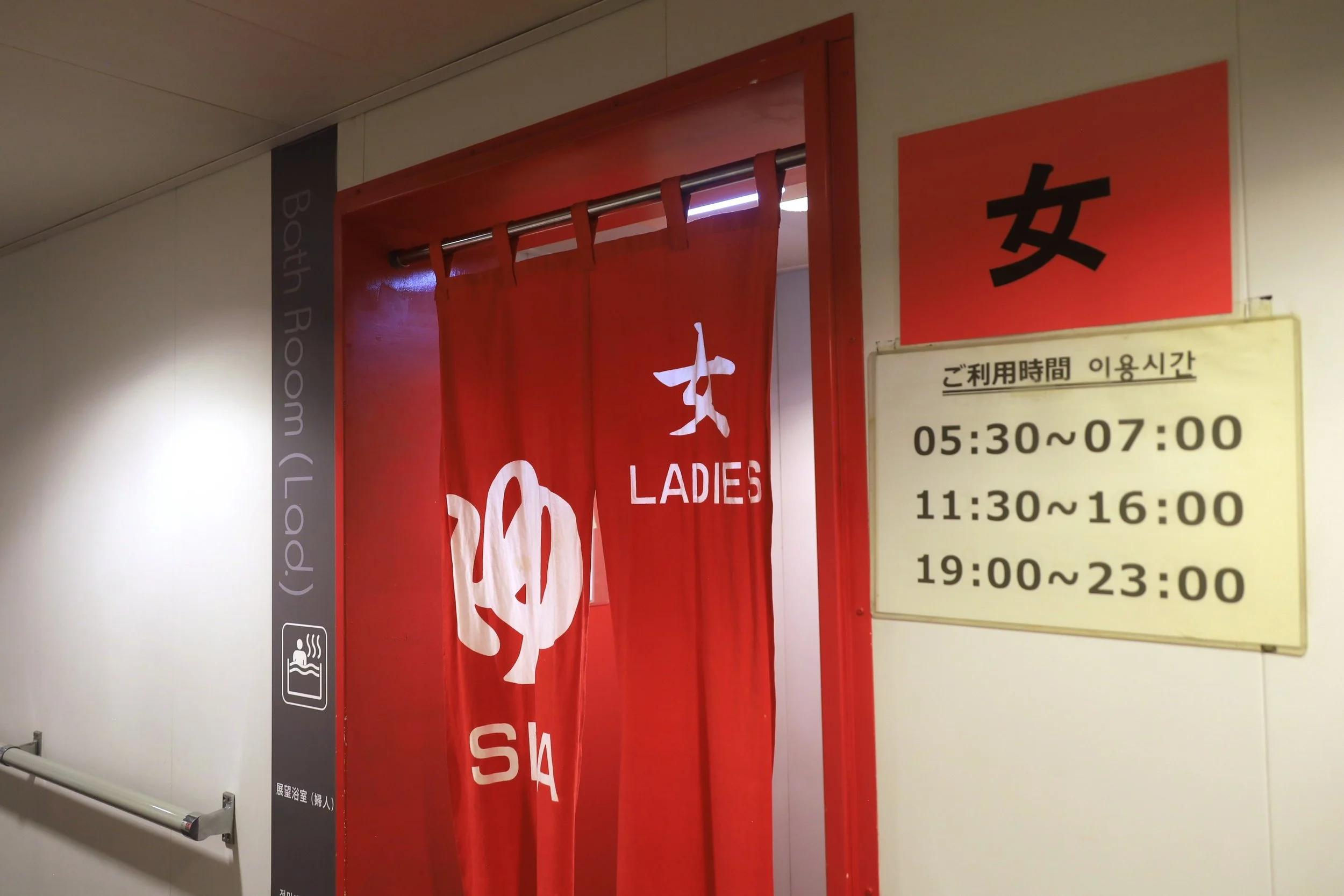 Hours later exploring this massive ship with a cafeteria, multiple lounges, a convenience store, karaoke and gaming rooms, I unexpectedly discovered a sento! That’s the same as an onsen but uses tap water instead of natural spring water because we’re on a boat, of course.