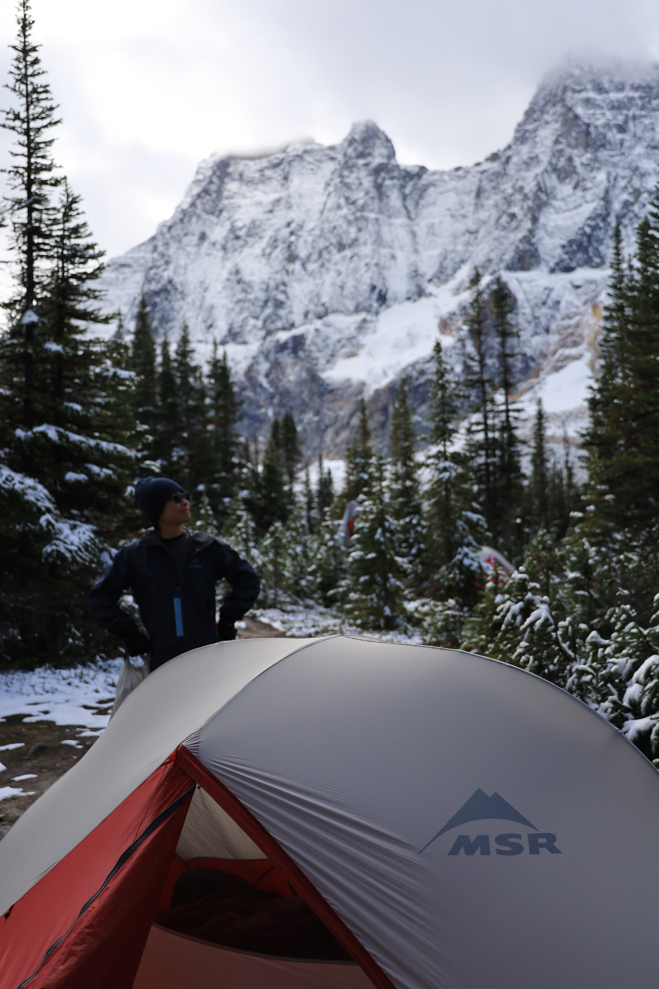 Amethyst Lakes campground was a few steps away. As the most coveted campground situated directly in front of the Ramparts, it’s effectively always fully booked.