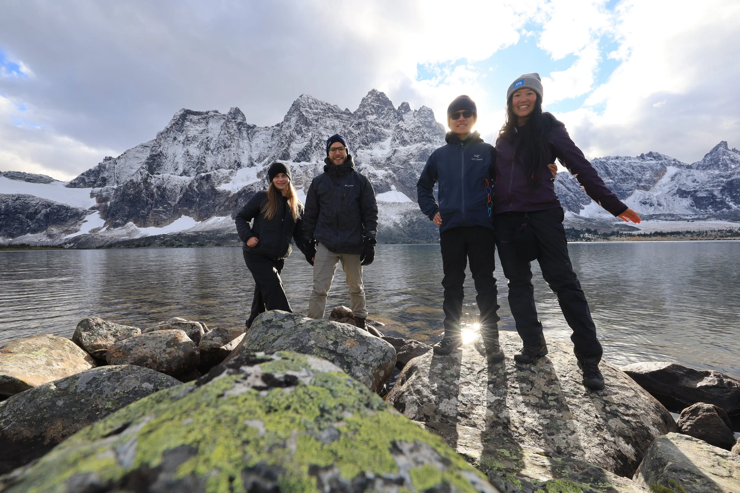 After numerous hours we stop for a break at this quaint little boulder field with reflective ponds that were starting to ice over for the winter. Gotta have some fun even while you’re exhausted! The mood of a group is the real energy booster.