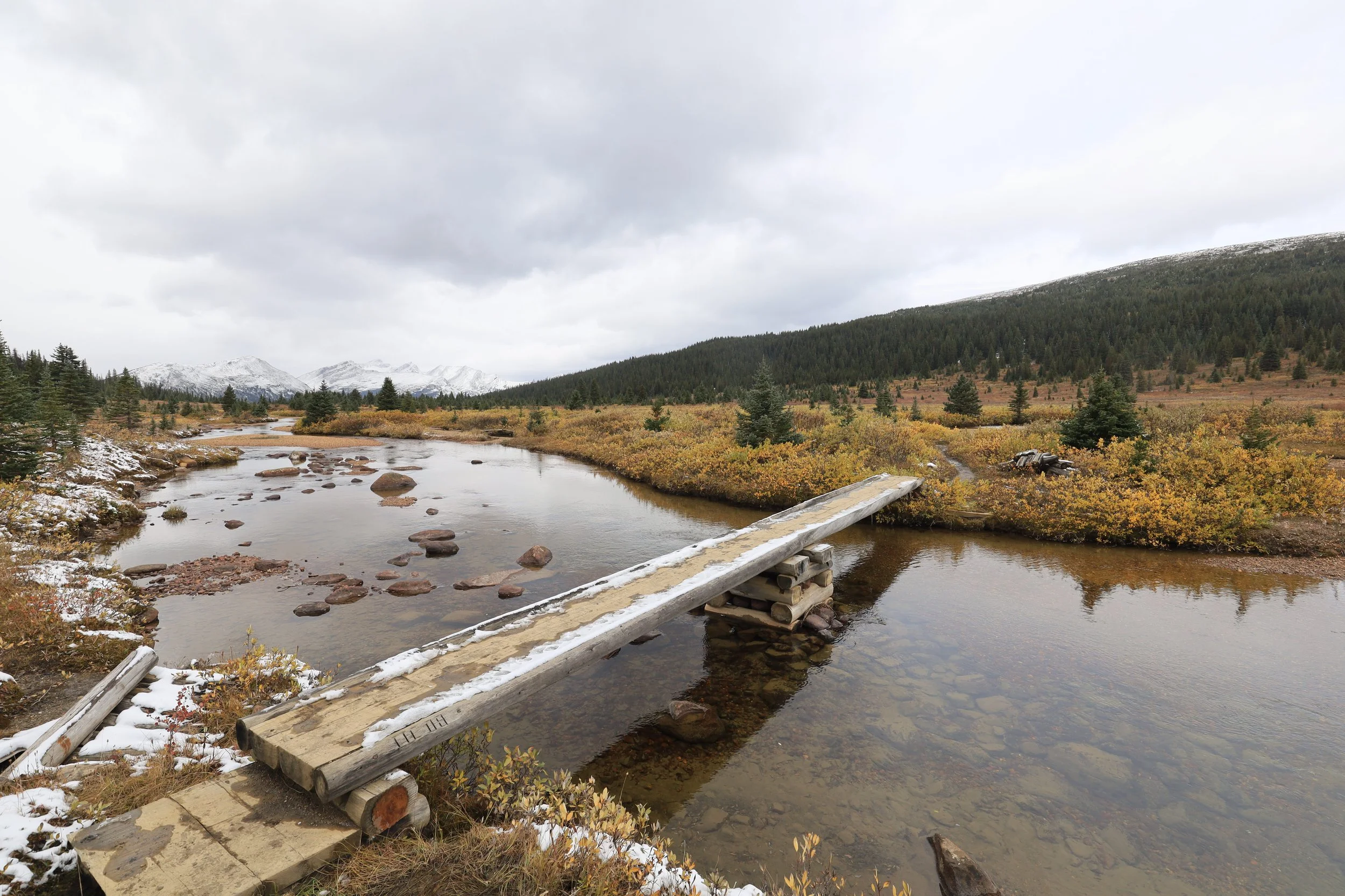 This section of marsh wetland is notorious in the spring and summer as a mosquito breeding ground. This is the #1 reason I chose to book Tonquin Valley in mid-September, late enough to guarantee full mosquito annihilation even in a warmer-than-average summer. We learned this lesson the hard way on our second-ever Rocky Mountain backcountry trip to Mt. Assiniboine last year.